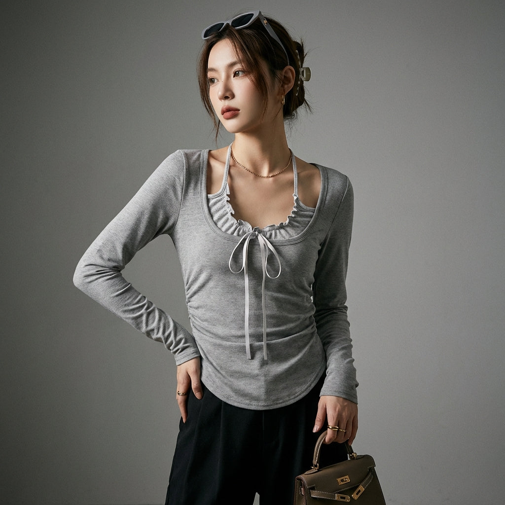 Adopta esta camiseta para un toque de elegancia discreta y una comodidad inigualable, una prenda esencial para tu armario inspirado en la moda coreana.