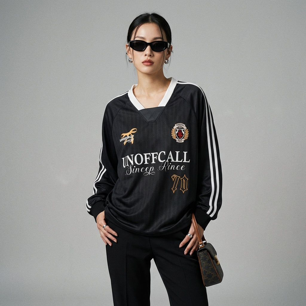 Adopta un look casual y con estilo con nuestra camiseta de rayas con cuello en V, perfecta para cualquier ocasión. Su corte holgado y sus mangas largas ofrecen una comodidad óptima sin dejar de estar a la moda. ✨