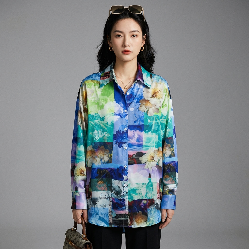 Adopta un look sofisticado y casual con nuestra camisa de satén estampada. Con cuello de solapa y corte holgado de manga larga, combina elegancia y comodidad. ¡Perfecta para un toque de refinamiento en el día a día! ✨