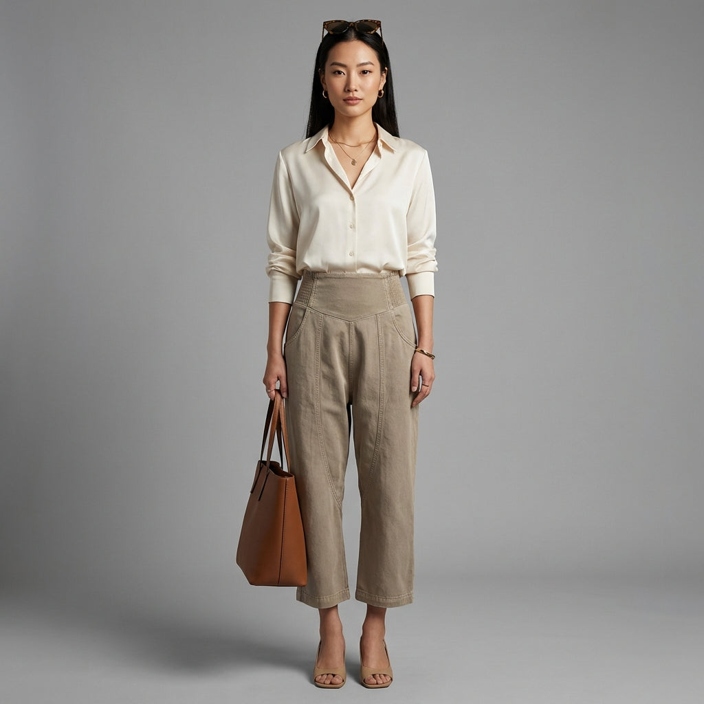 - Tipo: Pantalones rectos, Cropped. Un corte favorecedor que alarga la silueta y realza los zapatos, ideal para un look contemporáneo.
