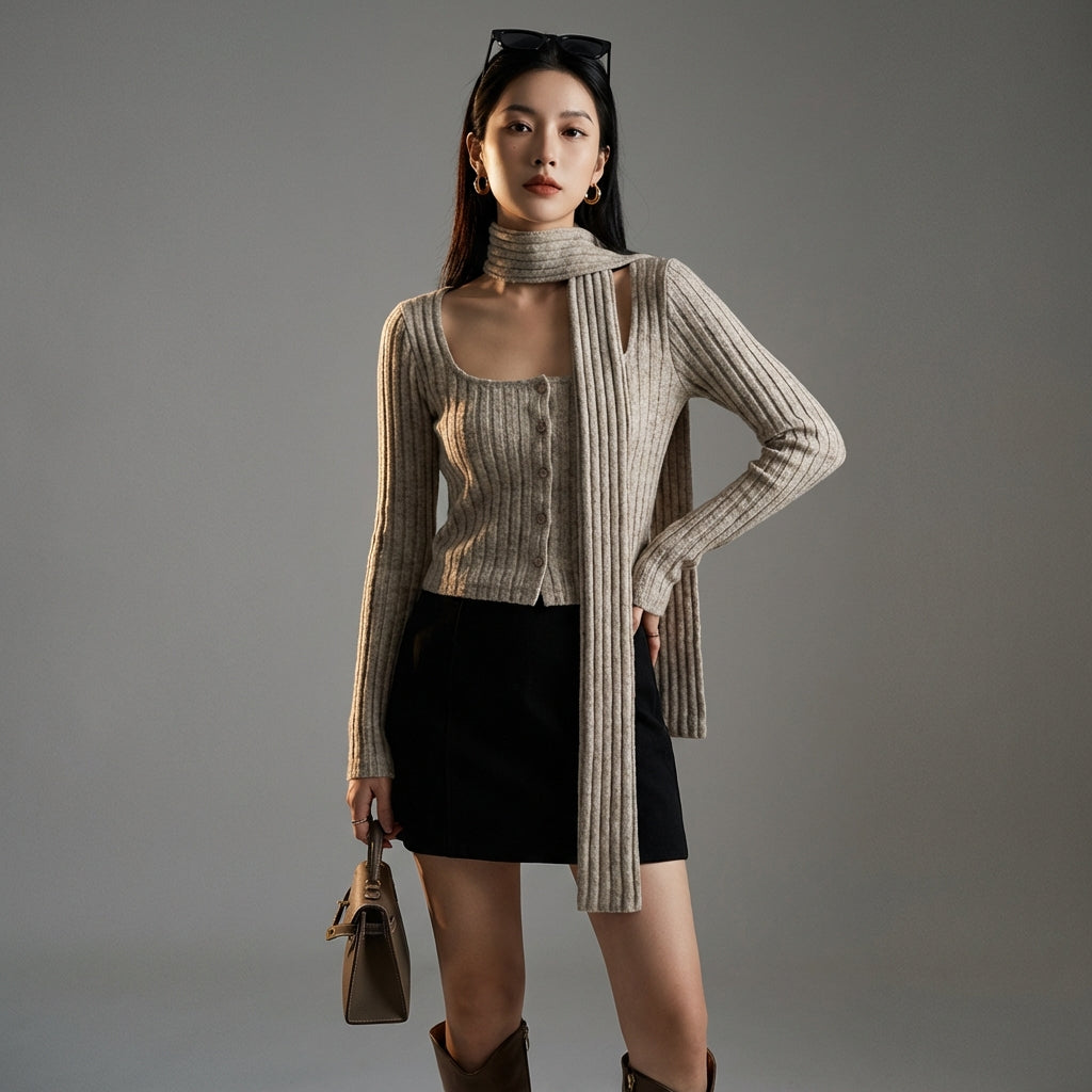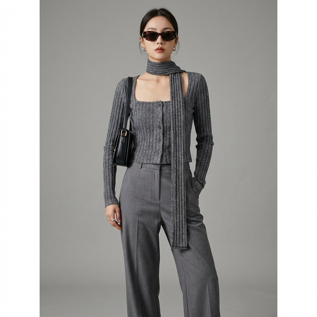 Afirma tu estilo con este top de punto de cuello cuadrado y manga larga, diseñado para un look moderno y elegante. ¡Su corte ajustado y su diseño sofisticado lo convierten en una pieza esencial para cualquier guardarropa de moda! ✨