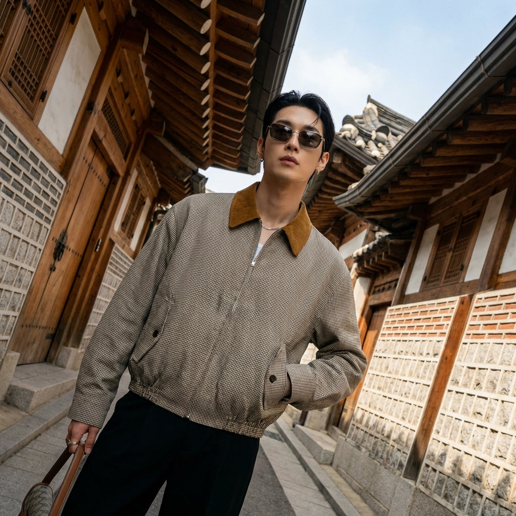 Afirma tu estilo con nuestra chaqueta corta de cuadros para hombre, una prenda versátil y a la moda. Su cuello de solapa clásico y su corte relajado la convierten en la aliada perfecta para un look casual chic. ¡Ponte a la vanguardia de la moda coreana con este modelo transpirable y cómodo! ✨