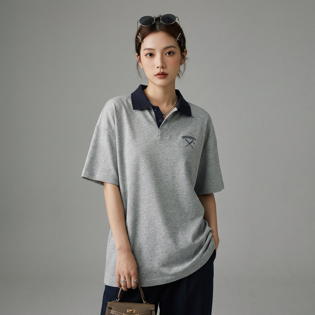 Adopta un look casual y a la moda con nuestro polo oversize, con un cuello bordado único y mangas cortas. ¡Su diseño bicolor aporta un toque moderno y elegante a todos tus conjuntos! 👕