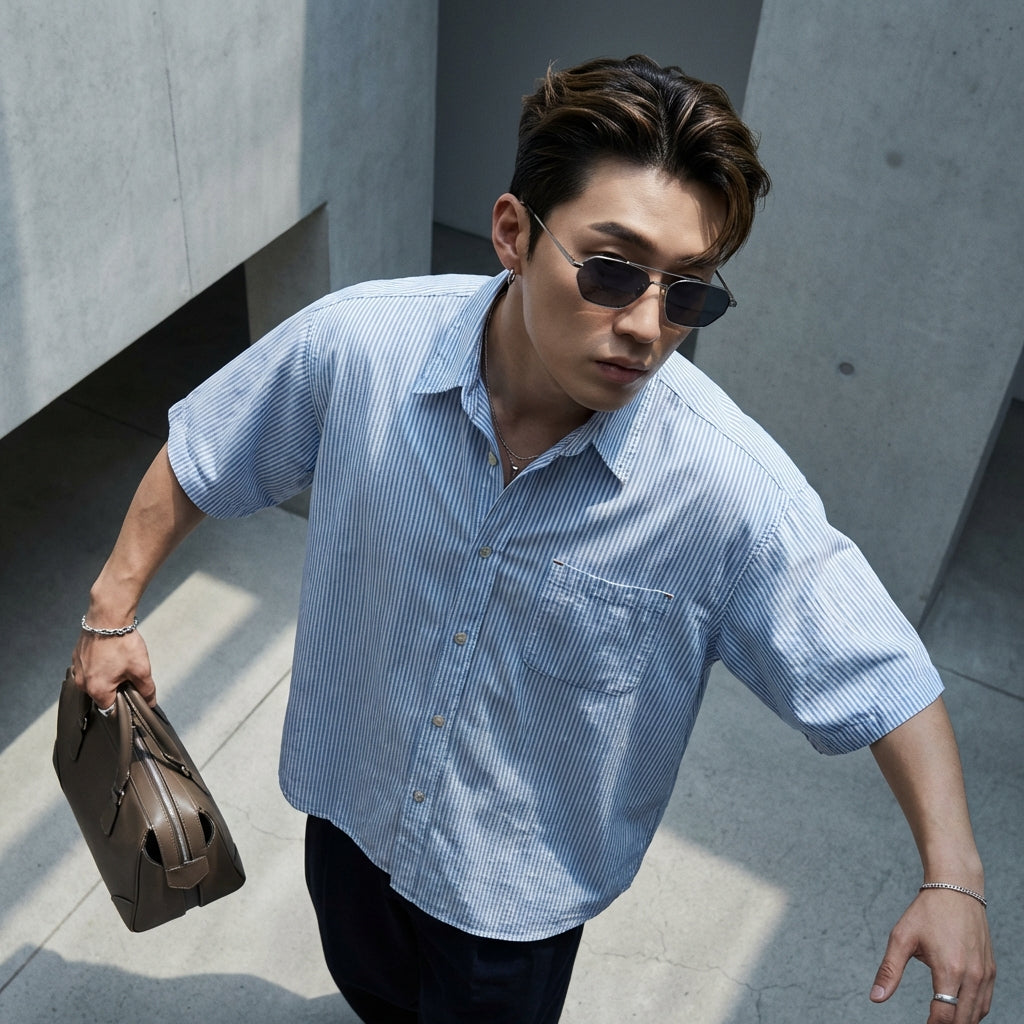 - Estilo: Streetwear, Casual, K-fashion. Esta camisa encarna el espíritu de la moda coreana casual, perfecta para un look moderno y sin esfuerzo.