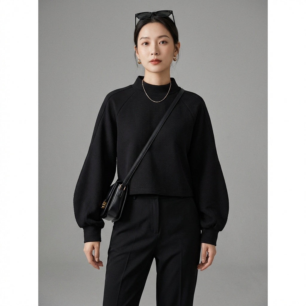 Adopta la comodidad y el estilo con nuestra sudadera holgada de cuello alto, con mangas "pata de cordero" para un toque de originalidad. ¡Su diseño texturizado y su aspecto minimalista la convierten en un imprescindible para un look casual y moderno! ✨