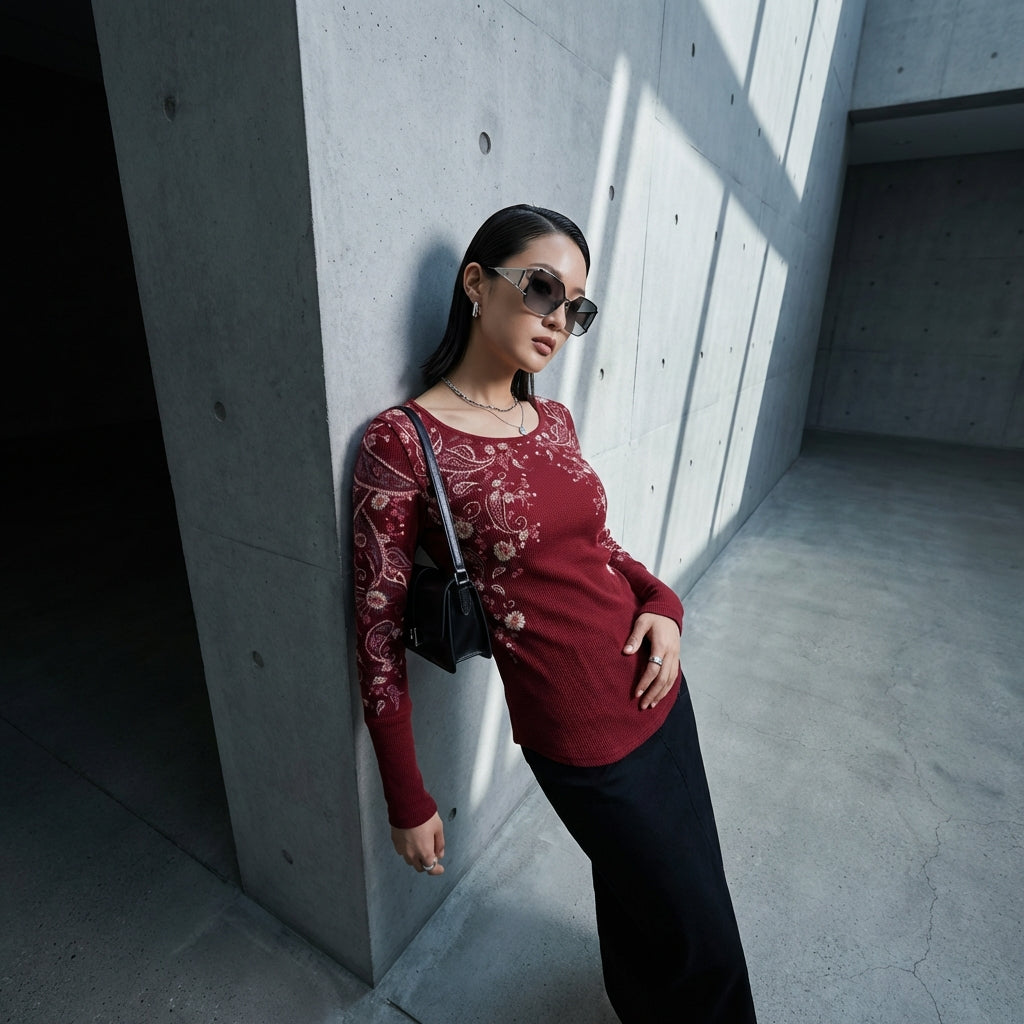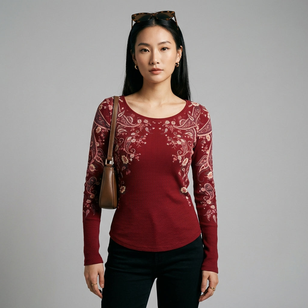 Adopta un look casual y a la moda con nuestra camiseta de manga larga de tejido gofre. Su corte cómodo y su color vivo la convierten en un esencial para todas las ocasiones casuales. 🌟