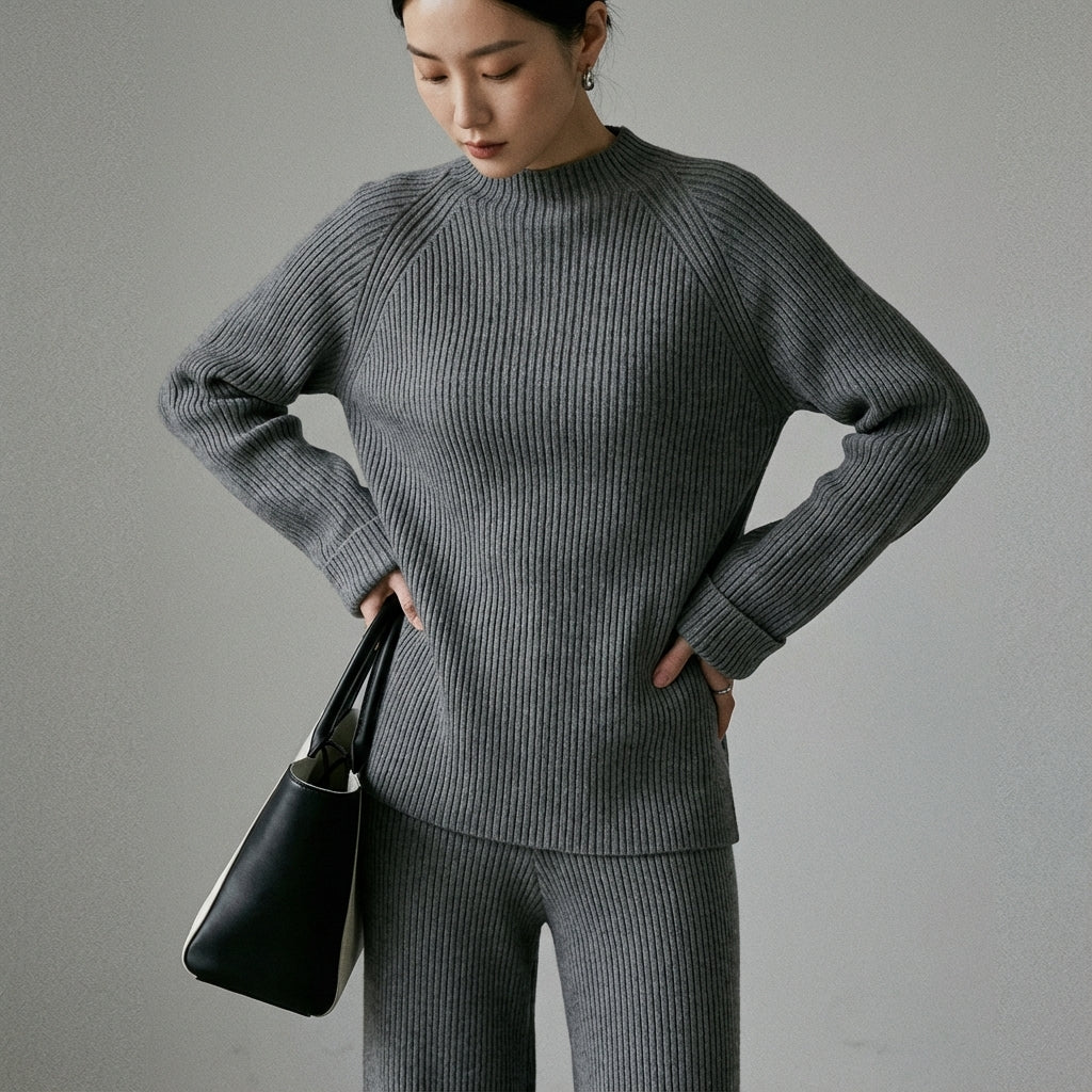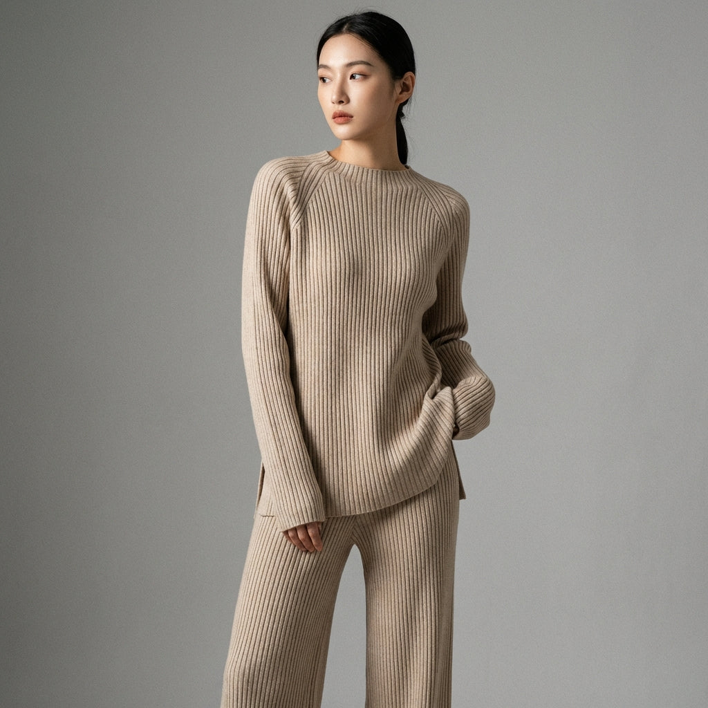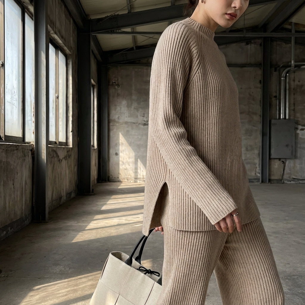 - Tipo: Conjunto de dos piezas, Jersey con abertura, Pantalón ancho. Un corte moderno y cómodo que asegura una silueta elegante y casual.