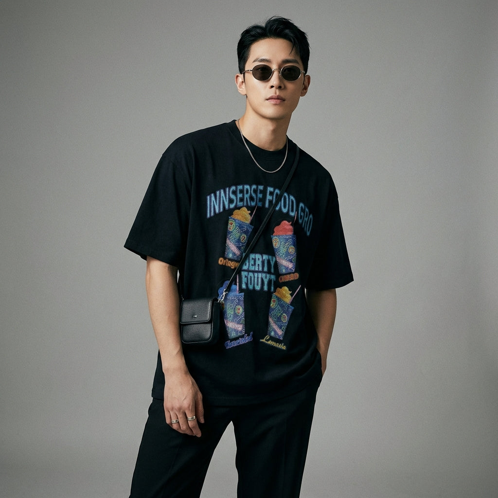 - Estilo: Streetwear, Retro Americano, Casual. Esta camiseta encarna una fusión perfecta entre la moda casual americana y un toque streetwear moderno, con su divertido estampado.