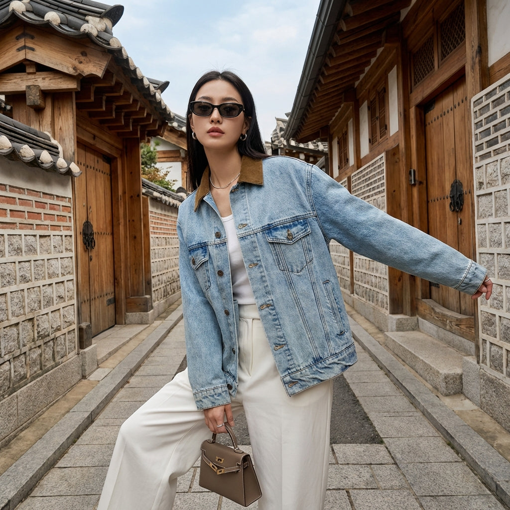 Esta chaqueta vaquera bicolor es la combinación perfecta entre estilo moderno y comodidad. Añade un toque de originalidad a tu atuendo mientras te mantienes a la vanguardia de la moda coreana.