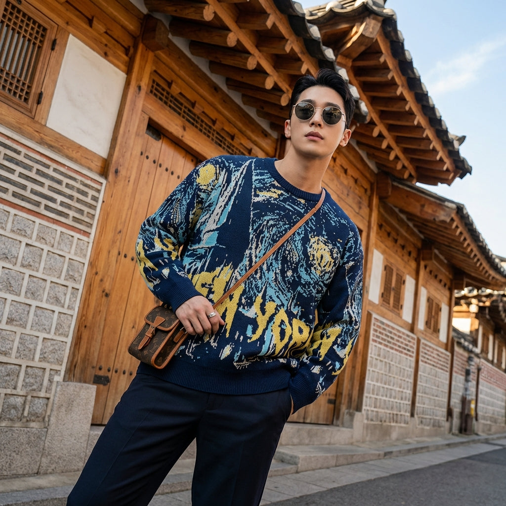 - Estilo: Streetwear, K-fashion, Tendencia. Este jersey encarna el espíritu casual y vanguardista de la moda coreana, perfecto para un look moderno y urbano.
