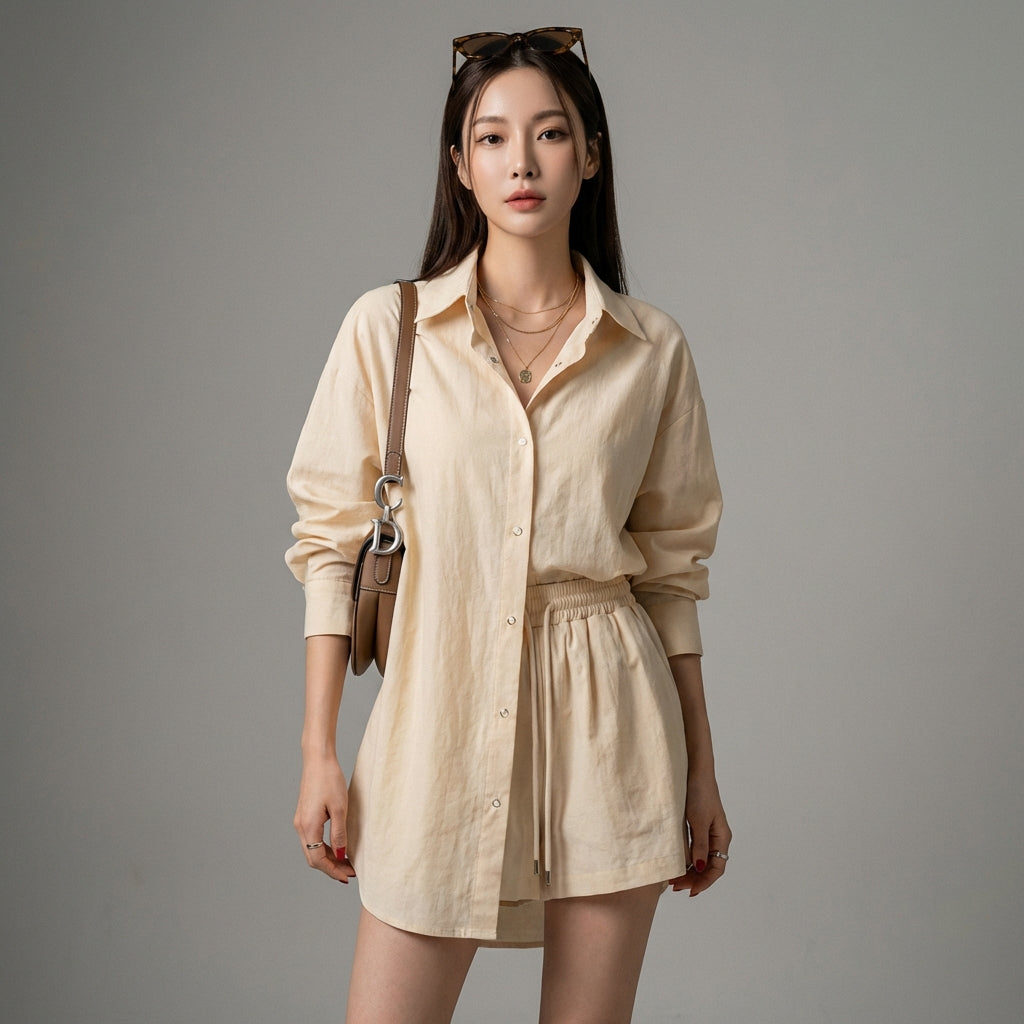 Descubre nuestro conjunto de camisa larga holgada y pantalón corto elástico, perfecto para los días soleados. Diseñado para ofrecer comodidad y estilo, este conjunto ligero es un imprescindible en tu armario de verano. ¡Ideal para un look casual y a la moda! ☀️