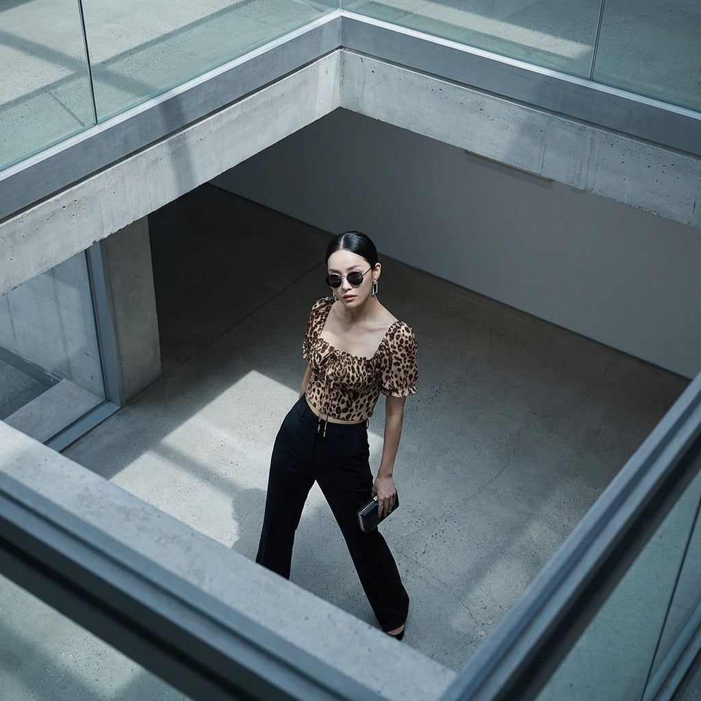 - Estilo: K-fashion, Tendencia, Femenino, Atrevido. Esta blusa encarna el espíritu de la moda coreana con su estampado animal y su corte moderno.
