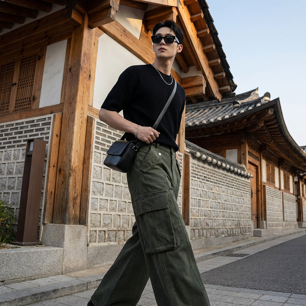 - Estilo: Streetwear, Casual, K-fashion. Estos pantalones encarnan el espíritu de la moda urbana coreana, con un toque vintage para un look único y con estilo.