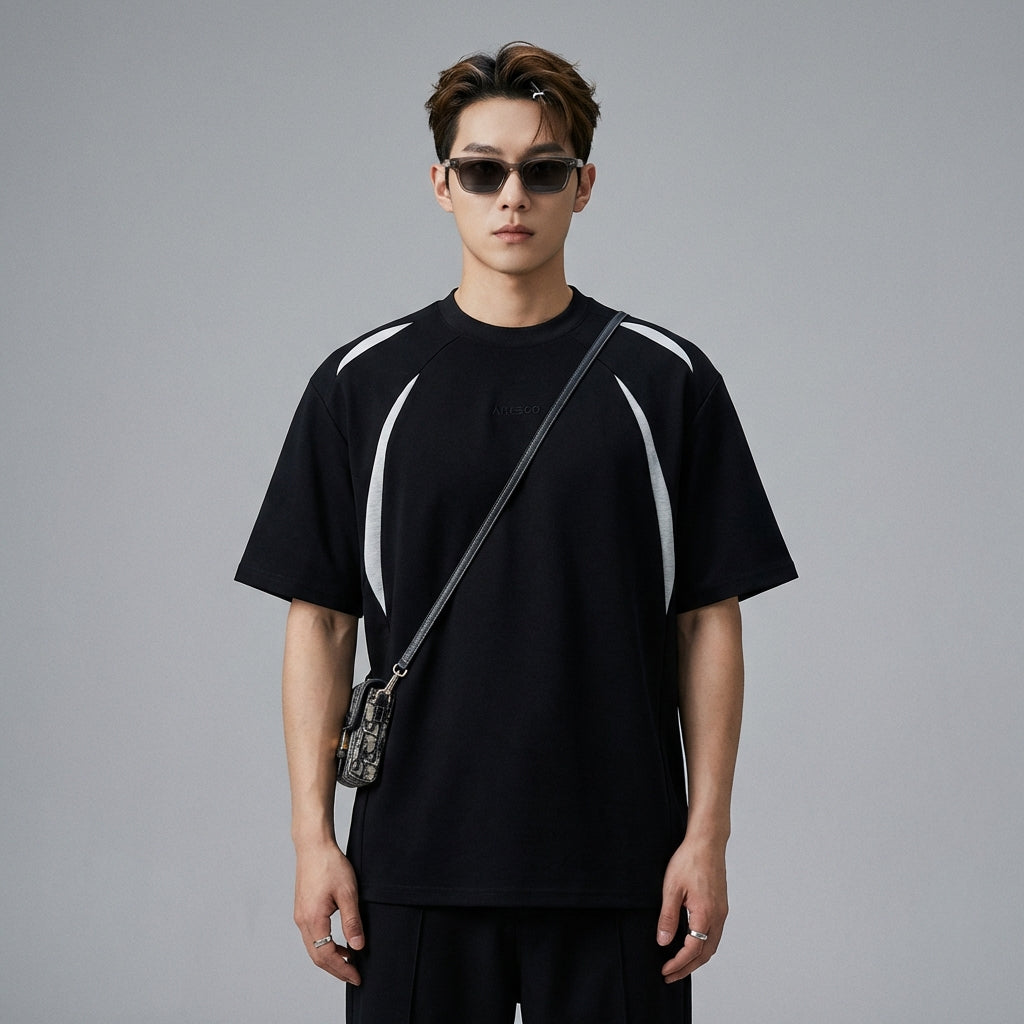 Afirma tu estilo con nuestra camiseta desestructurada de manga corta y cuello redondo, perfecta para un toque de originalidad en el día a día. ¡Su diseño color block retro aporta un aire moderno y desenfadado! ✨
