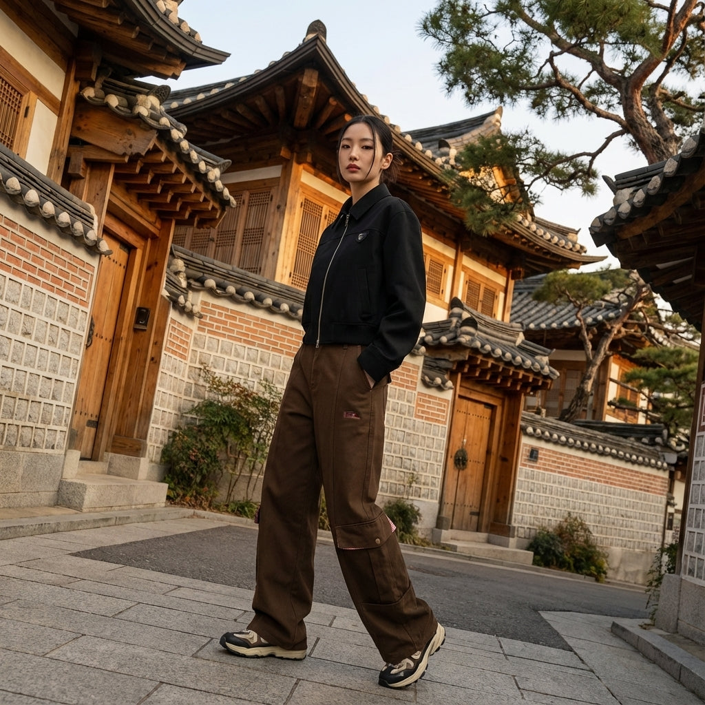 - Estilo: Moda coreana, Streetwear, Workwear. Estos pantalones encarnan el espíritu relajado y moderno de la moda coreana, ideales para un look diario o un festival de kpop.