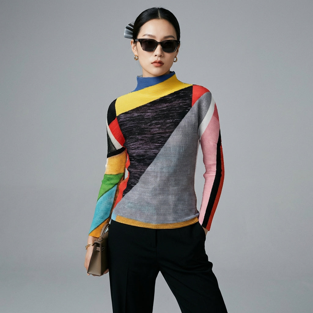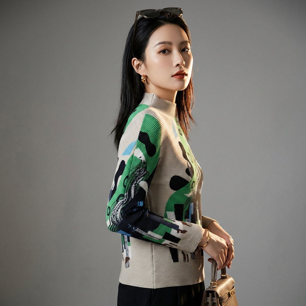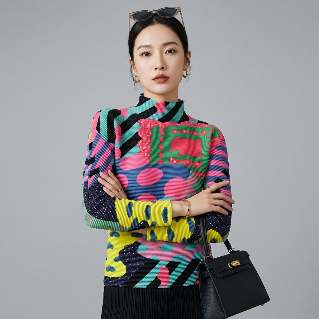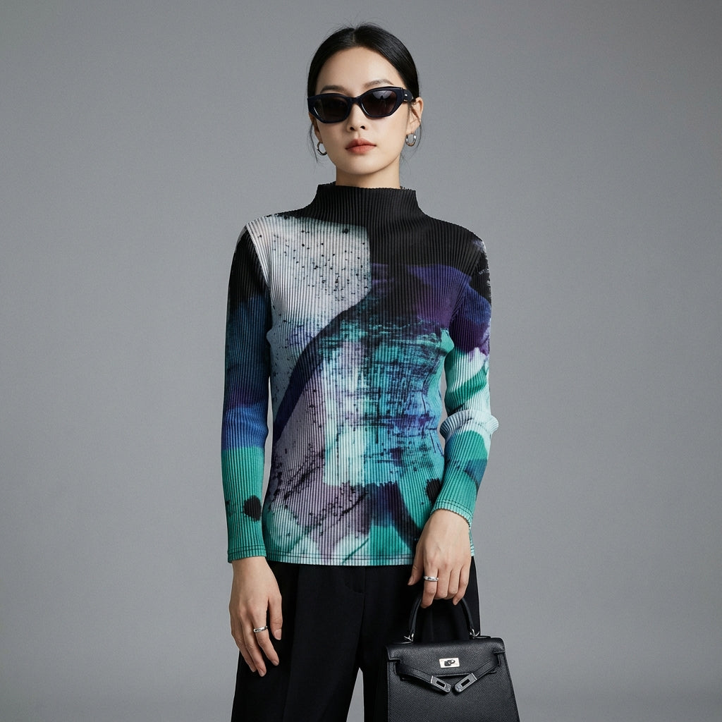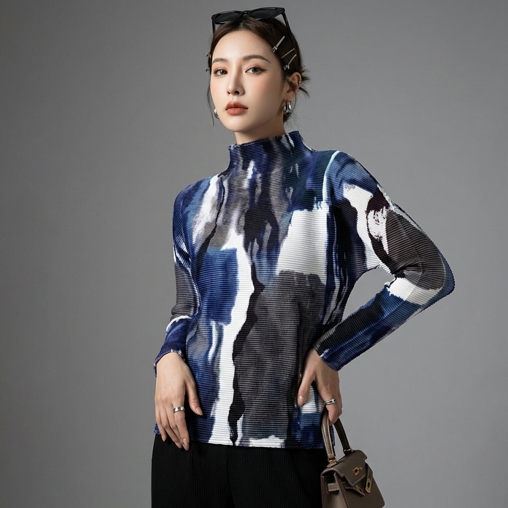 Descubre nuestra blusa plisada de moda, perfecta para un look elegante y moderno. Con su estampado único y su cuello semi-alto, ofrece una silueta estilizada y un estilo versátil. ¡Ideal para llevarla por ambos lados, se adapta a todos tus deseos! ✨