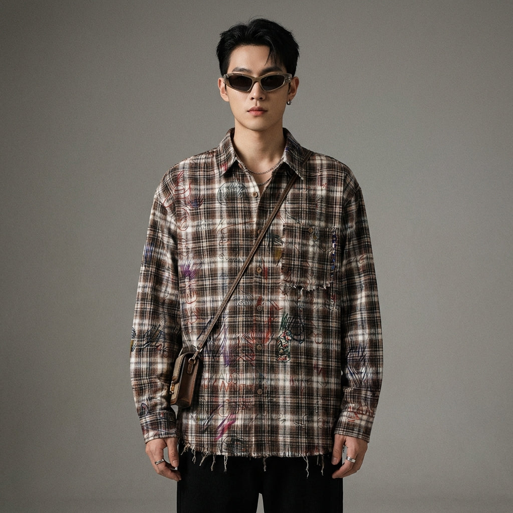 Perfecta para expresar tu personalidad, esta camisa de cuadros deshilachada es una elección audaz para aquellos a quienes les gusta destacar.