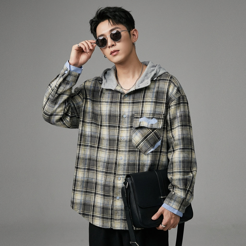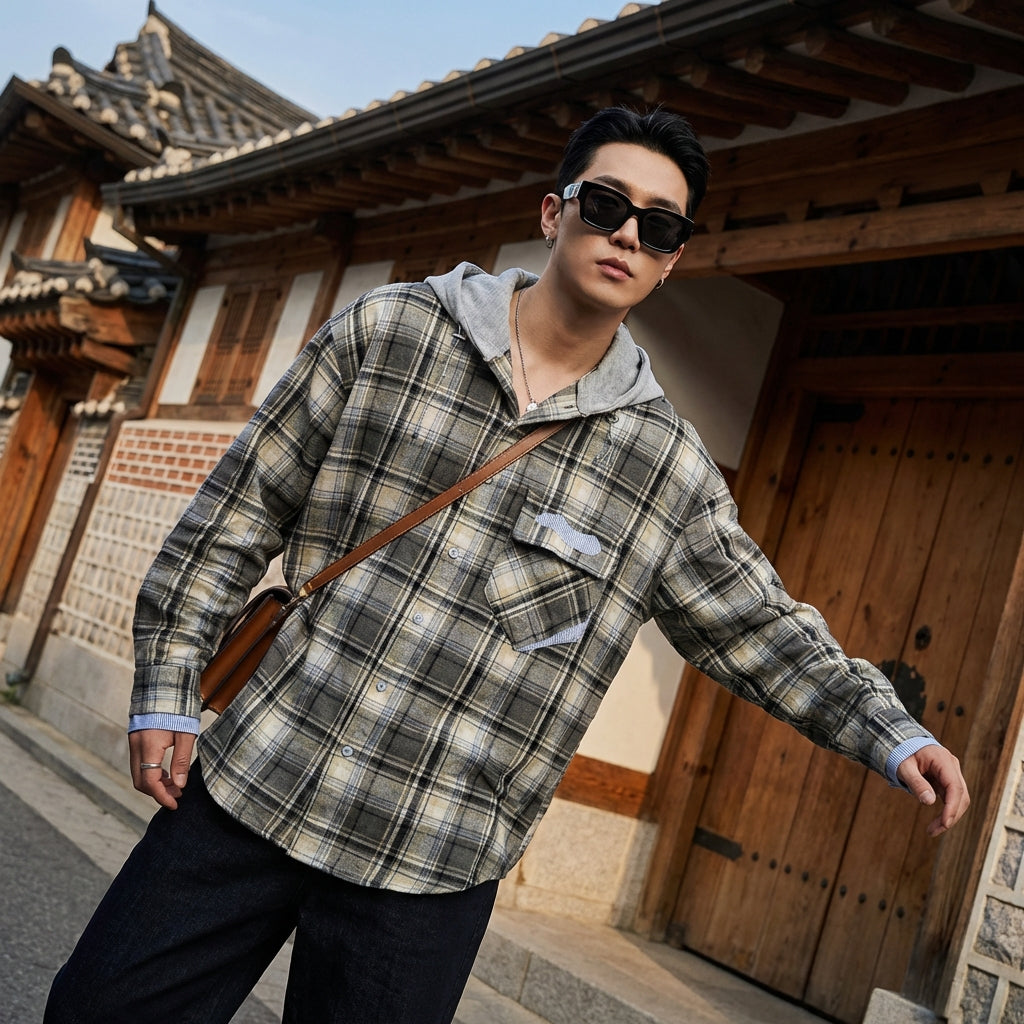 Adopta un look casual y moderno con nuestra camisa con capucha de cuadros, diseñada para un estilo de falsa superposición. Su corte holgado y su diseño moderno la convierten en un imprescindible para un armario elegante y cómodo. ✨