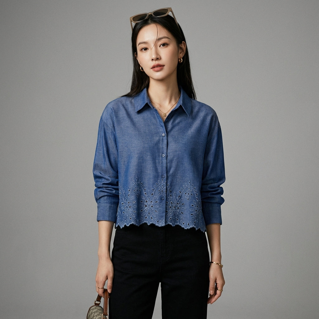 Adopta un look casual y moderno con nuestra camisa corta de denim. Ideal para realzar cualquier atuendo, aporta un toque de estilo urbano y moderno. ¡Perfecta para los días soleados o las noches con amigos! 💙