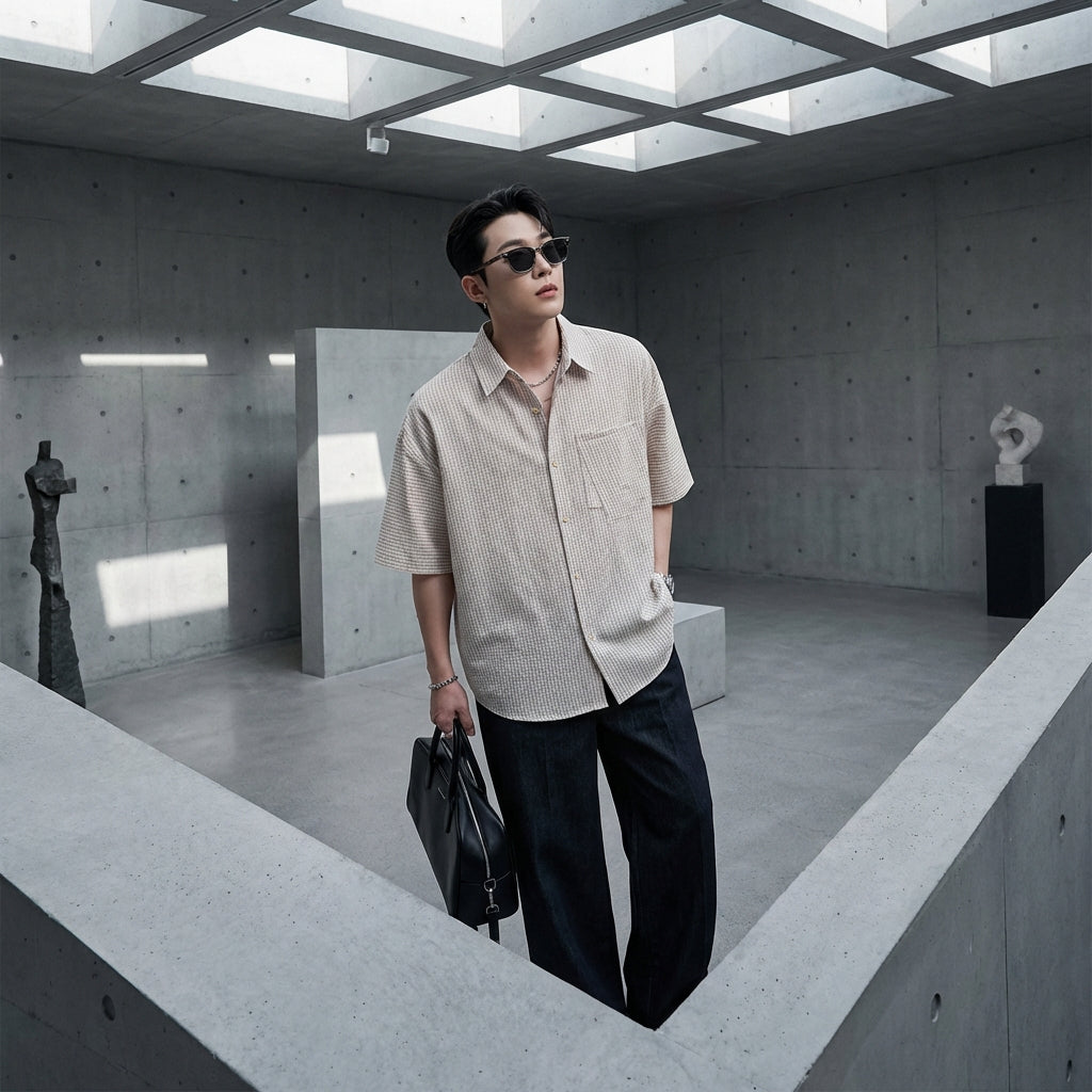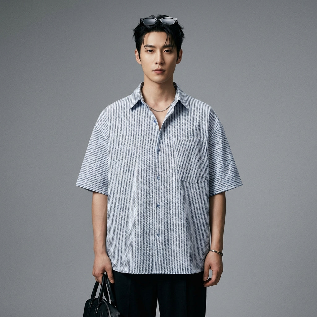 Adopta un look casual y con estilo con nuestra camisa de cuadros de manga corta, con un corte holgado y cuello solapa. ¡Perfecta para un estilo moderno y cómodo en el día a día! 👕