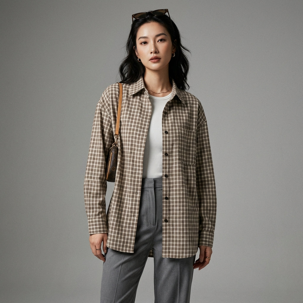 Adopta un look casual y moderno con nuestra camisa de cuadros oversize, perfecta para superponer o llevar sola. ¡Su estilo holgado y cómodo la convierte en un imprescindible para un look streetwear o un toque vintage! 🍂