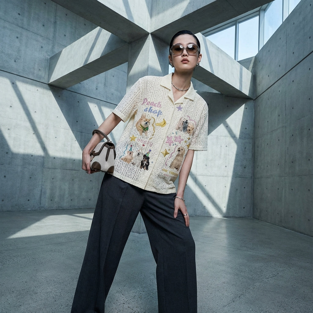 Adopta un look casual y adorable con nuestra camisa oversize de manga corta, adornada con un encantador estampado de cachorro. ¡Su cuello solapa y su corte holgado la convierten en una prenda ideal para un estilo único y cómodo! 🐶