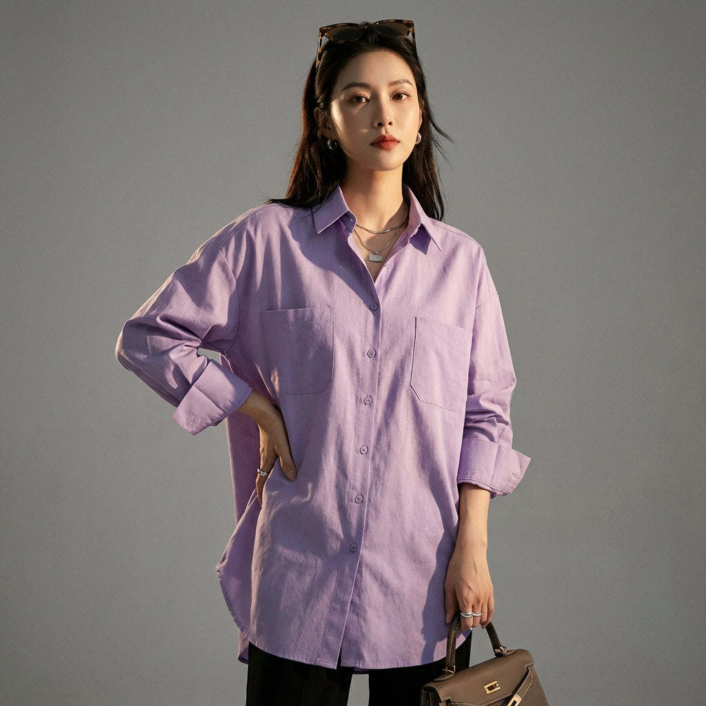 Adopta un look casual y chic con nuestra camisa oversize lisa. Su corte amplio y diseño minimalista la convierten en un imprescindible para todas las estaciones. ¡Perfecta para un estilo moderno y sofisticado en el día a día! ✨