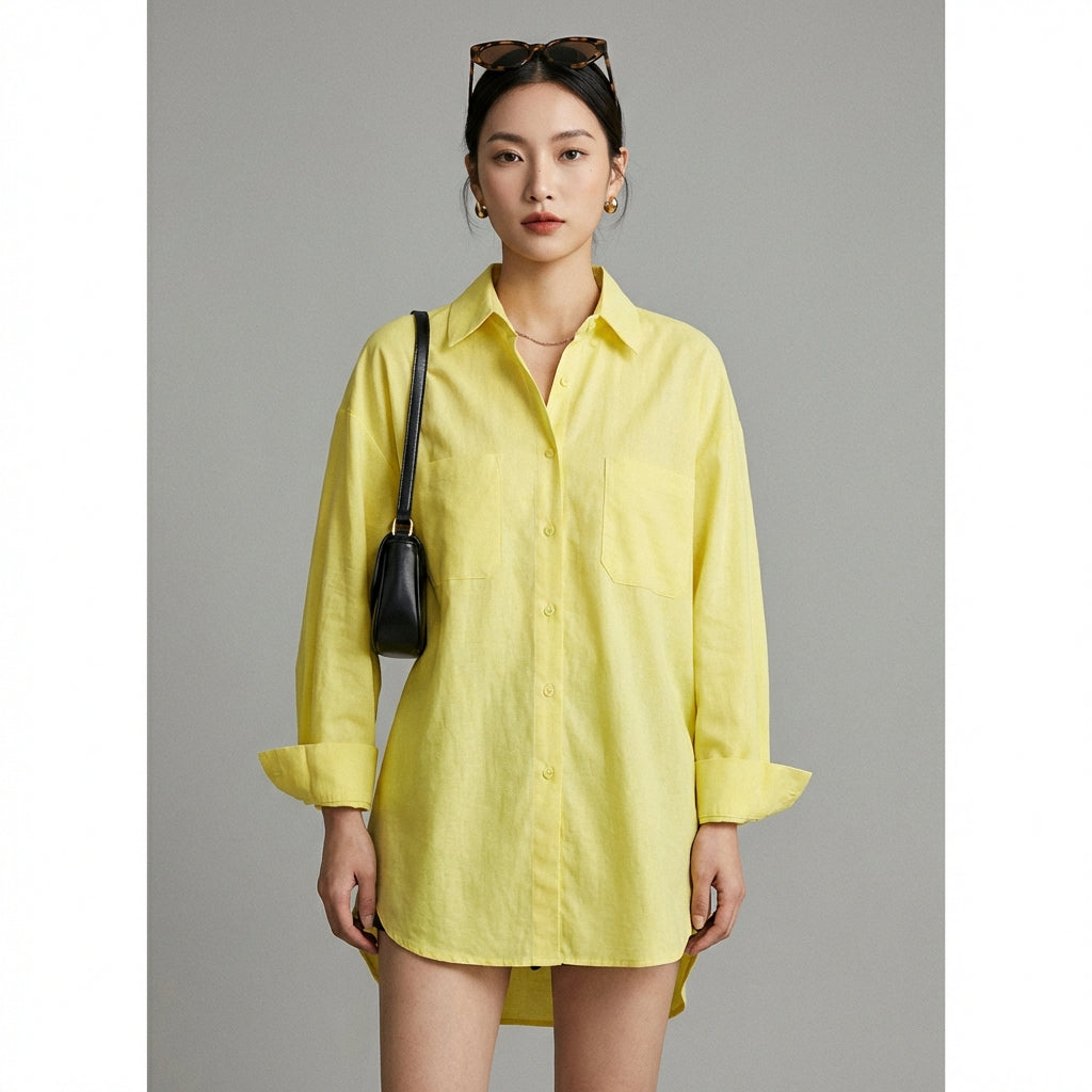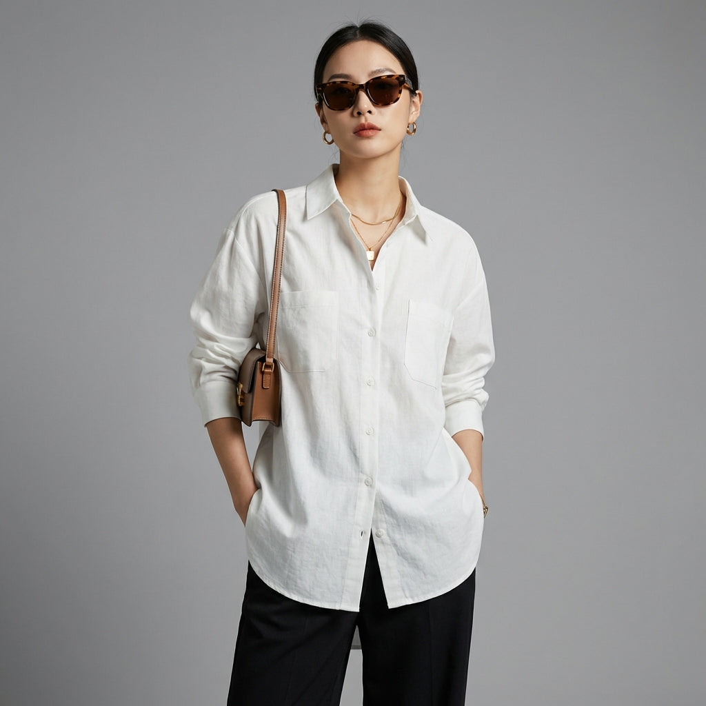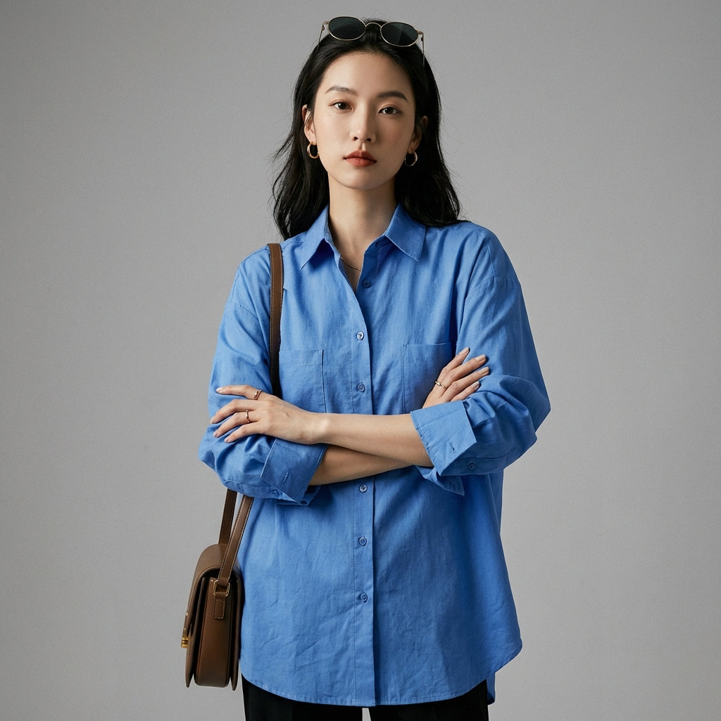 - Estilo: Minimalista, Streetwear, K-fashion. Esta camisa encarna la elegancia casual típica de la moda coreana, ideal para un estilo urbano y de tendencia.