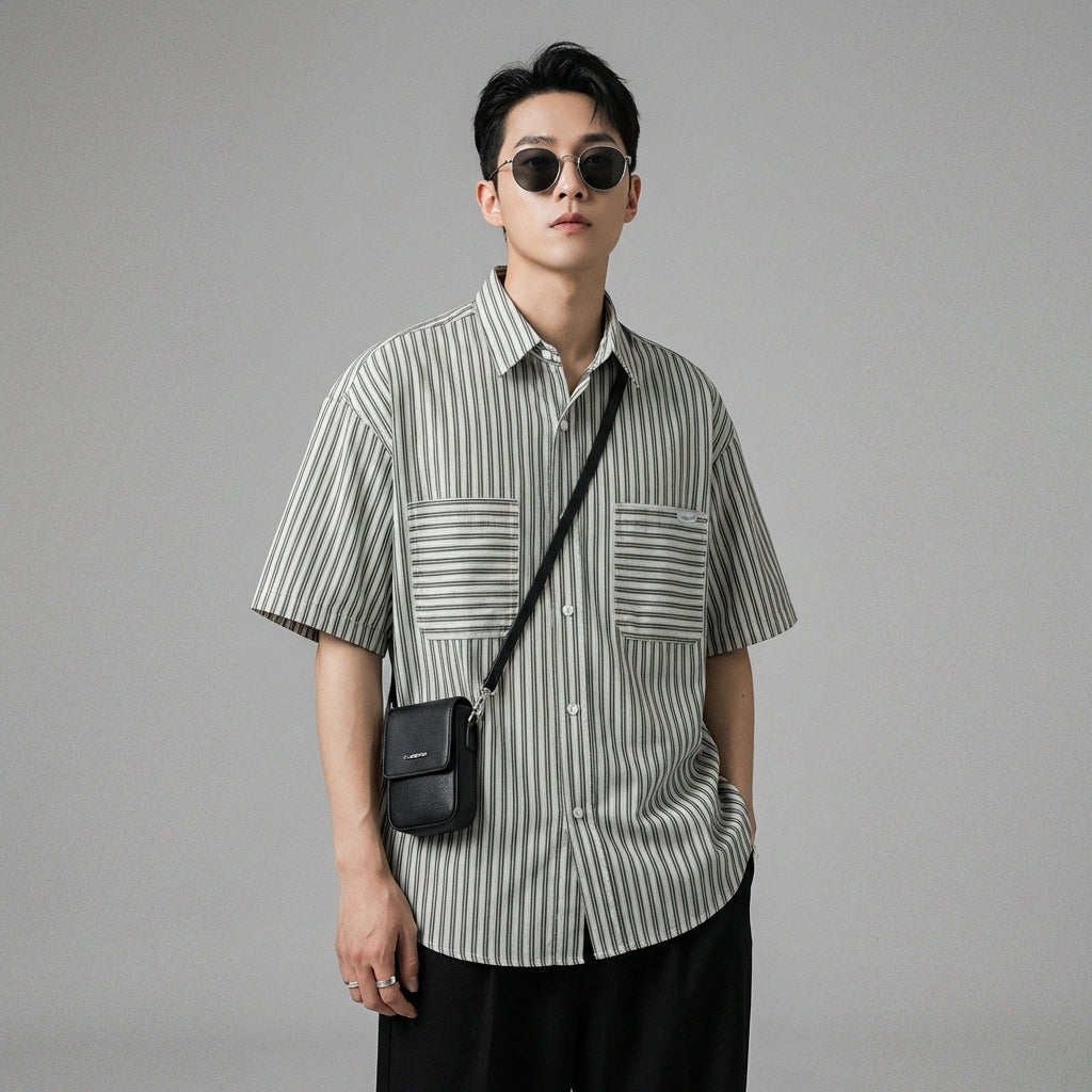 - Estilo: Streetwear, Casual, K-fashion. Esta camisa encarna el espíritu joven y dinámico de la moda coreana, ideal para un look urbano y moderno.