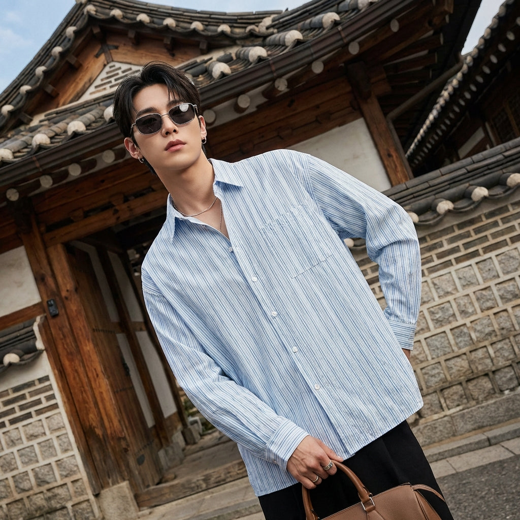 - Estilo: Streetwear, Casual, K-fashion. Esta camisa encarna el estilo urbano y casual, ideal para un look moderno y a la moda.