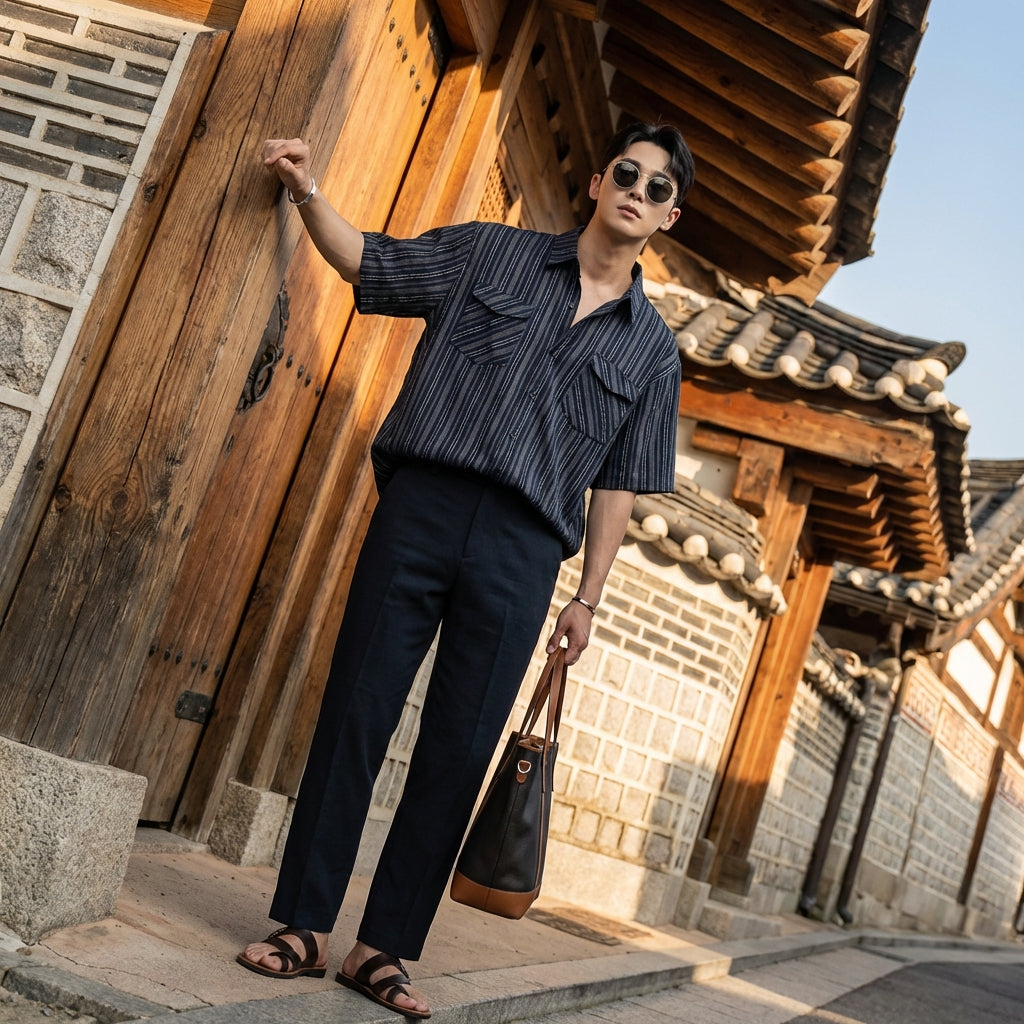 - Estilo: Streetwear, Casual, K-fashion. Esta camisa encarna la estética relajada y moderna de la moda coreana, perfecta para un look urbano y con estilo.
