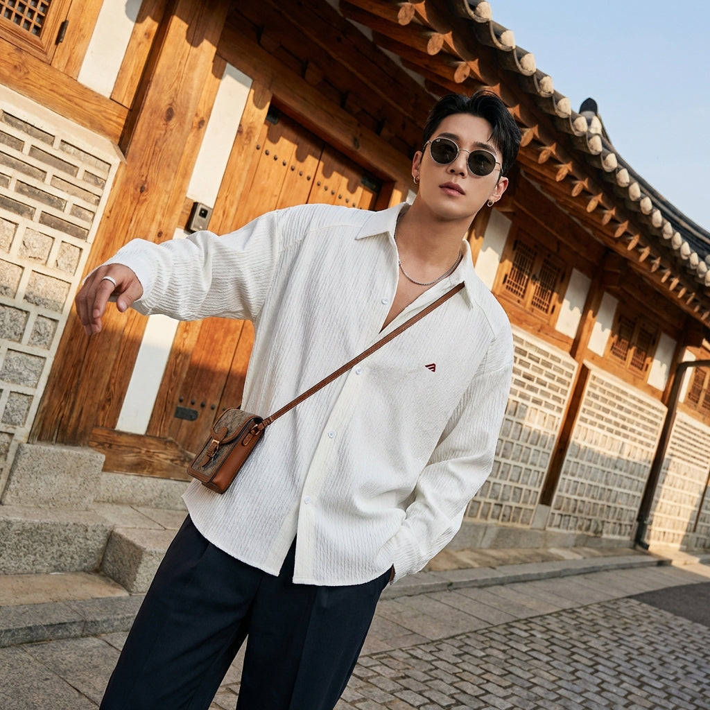 - Estilo: Streetwear, Minimalista, K-fashion. Esta camisa encarna la estética casual y chic de la moda coreana, perfecta para un look moderno y versátil.