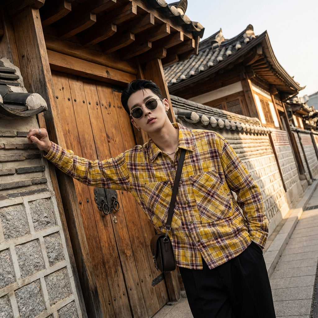 - Estilo: Streetwear, Casual, K-fashion. Esta camisa refleja las tendencias actuales de la moda coreana con un toque urbano y moderno.