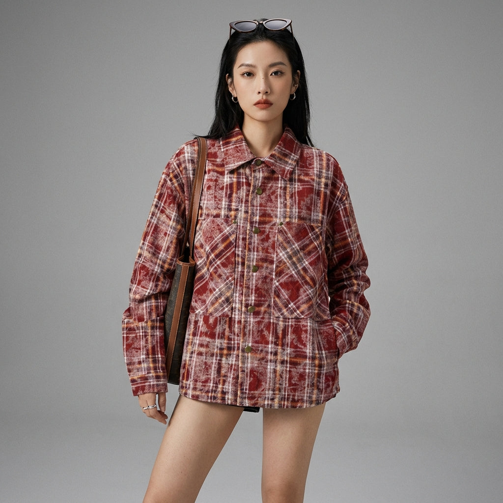 Adopta un look moderno y casual con nuestra camisa Tie-Dye a cuadros. ¡Su diseño único y su corte cómodo la convierten en un imprescindible para un estilo urbano atrevido! ✨