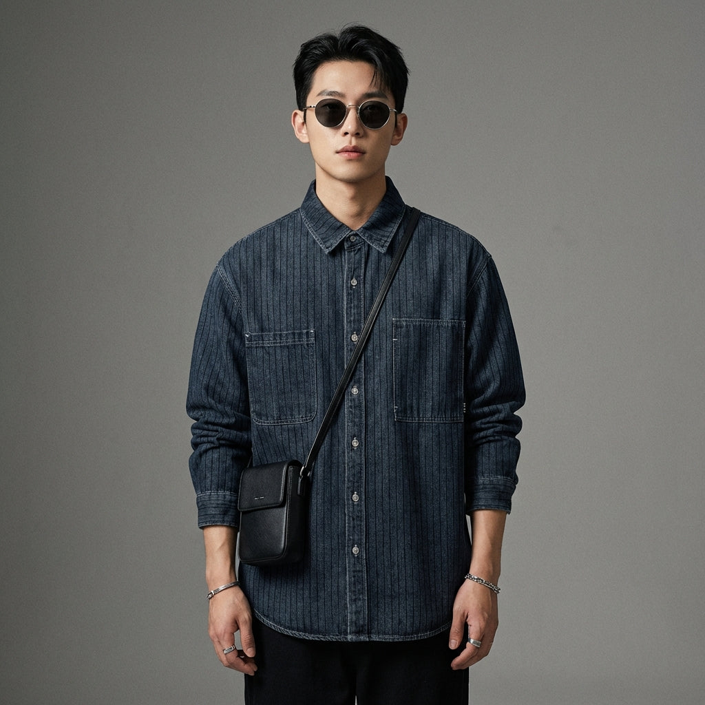 Esta camisa vaquera de cuadros es una pieza clave para un estilo casual y asertivo, que encaja perfectamente en un look streetwear o retro.