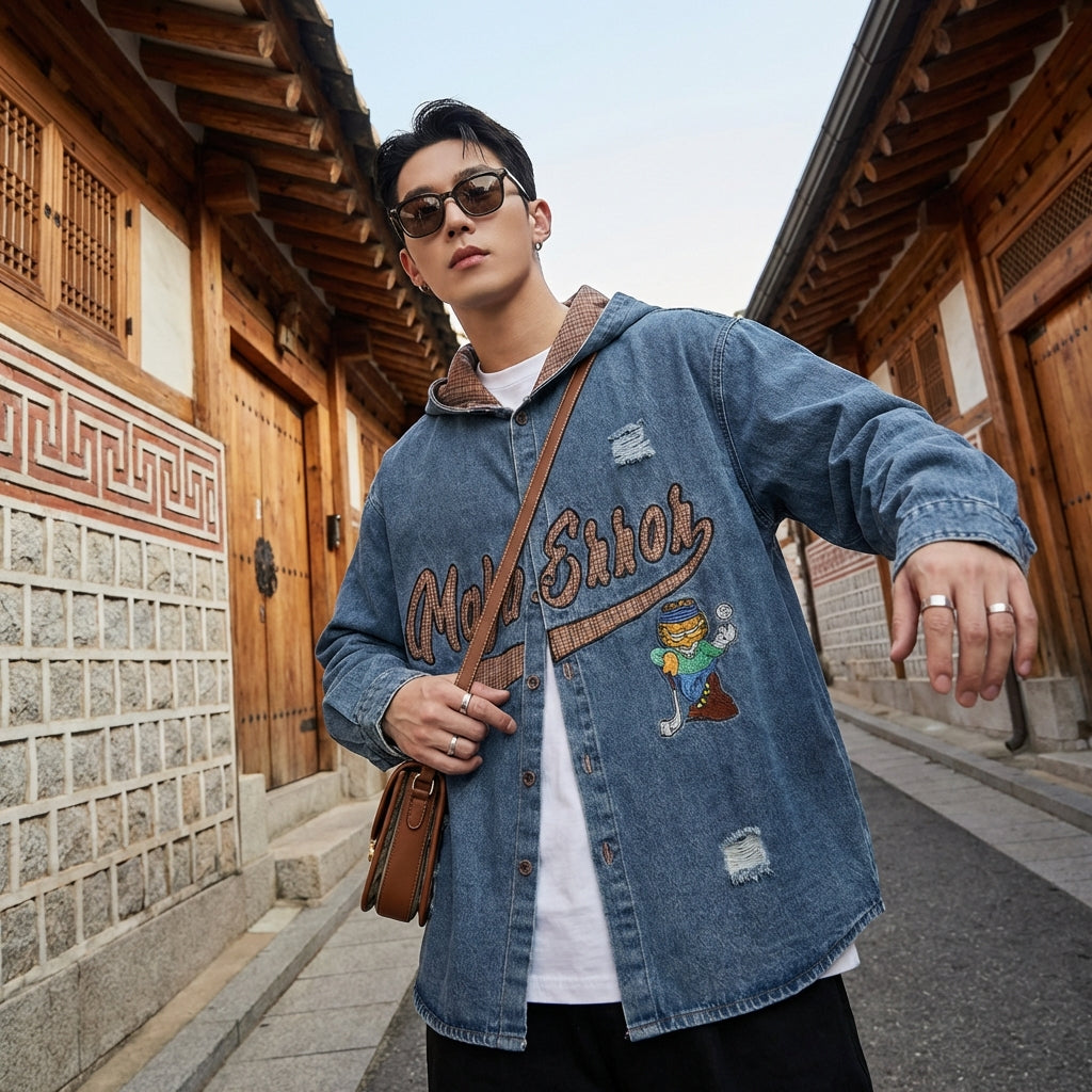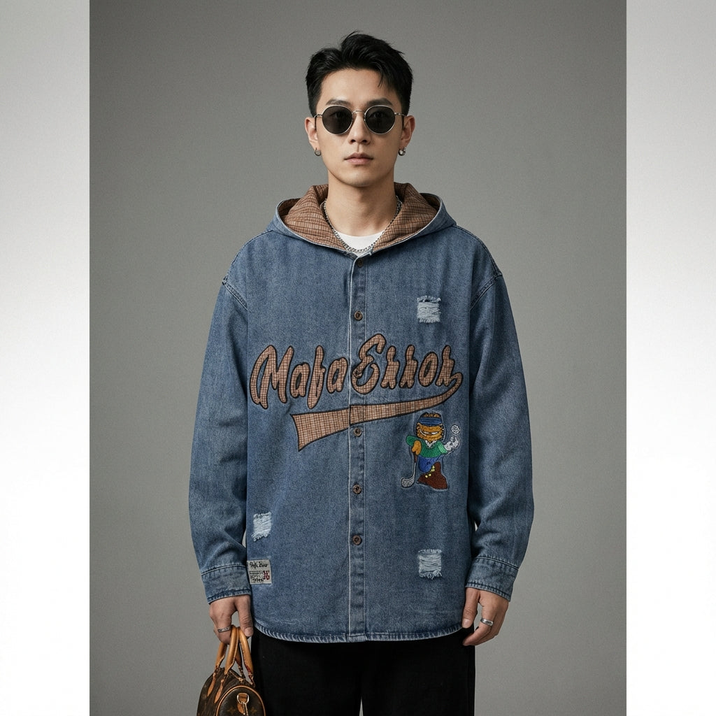 Adopta un look casual y a la moda con nuestra camisa con capucha de denim, adornada con letras bordadas. Su corte holgado y su estilo retro lavado la convierten en un imprescindible para un estilo urbano y con clase. ¡Perfecta para él y para ella! ✨