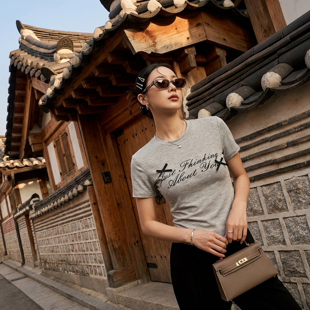 Adopta un look casual y moderno con nuestra camiseta de cuello redondo estampada. ¡Su corte slim y sus mangas cortas la convierten en un imprescindible para un estilo urbano y moderno! ✨