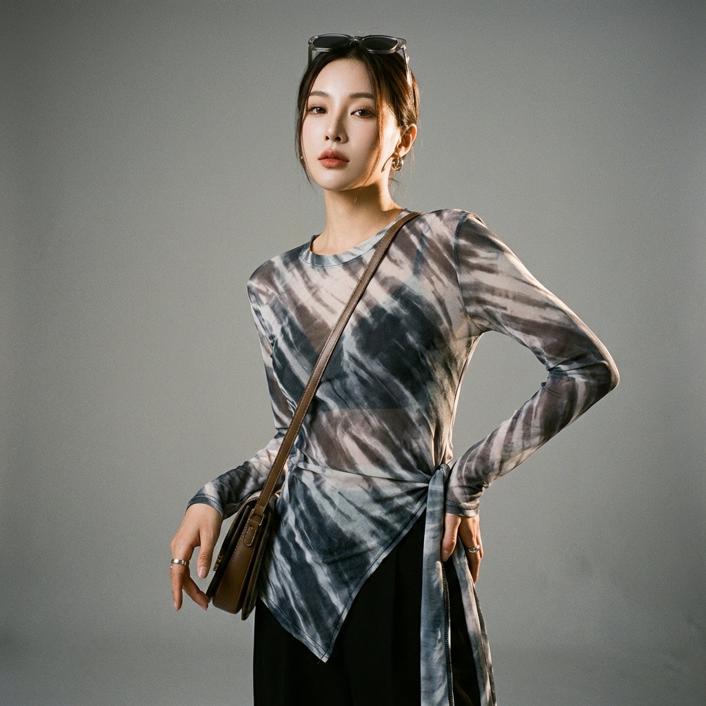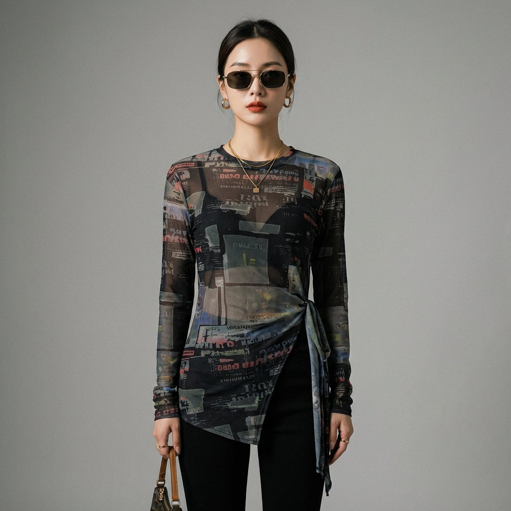 Afirma tu estilo con nuestra camiseta corta de manga larga, con un diseño anudado irregular y un corte ajustado. ¡Perfecta para un look moderno y atrevido! ✨