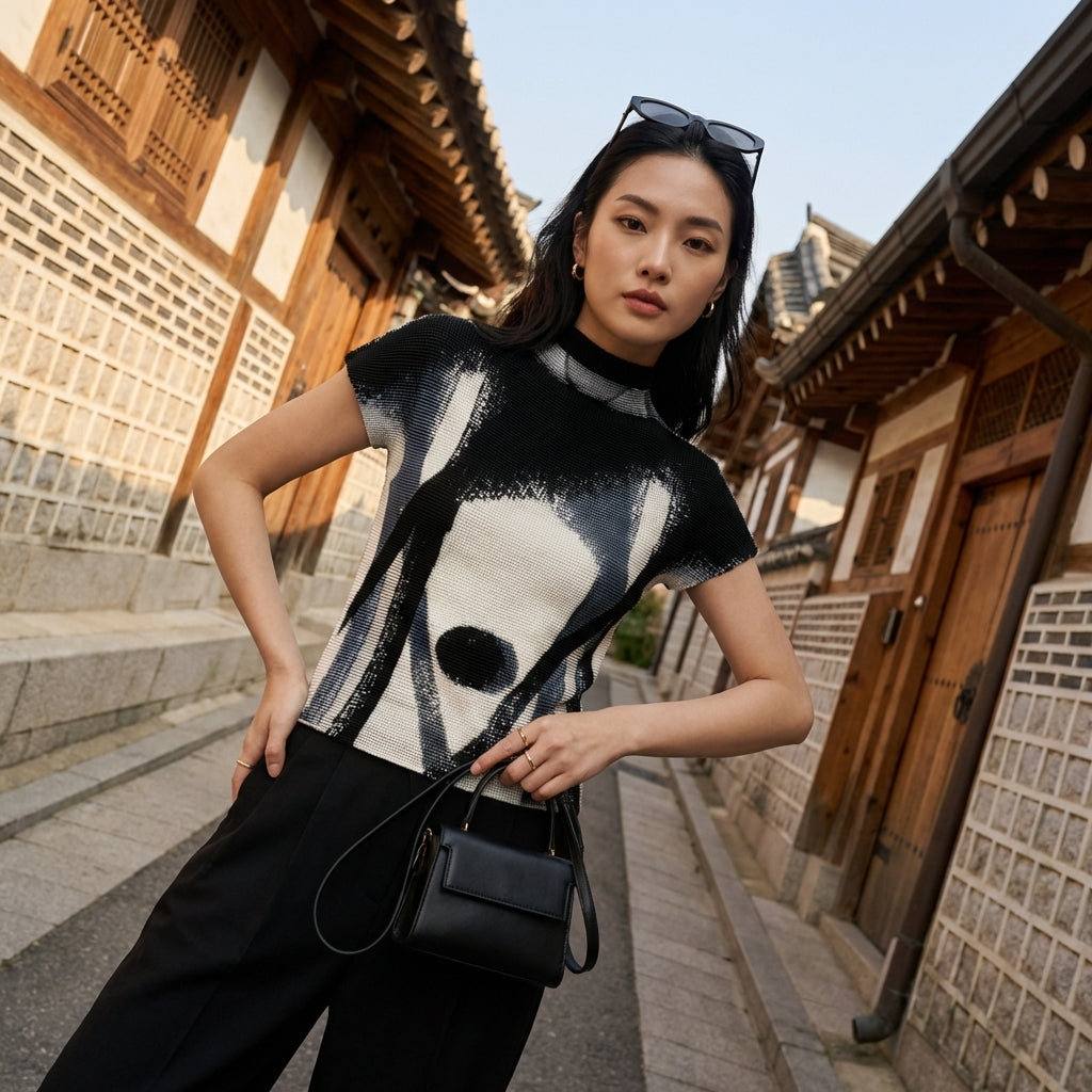 • Estilo: Urbano, K-fashion, Tendencia. Esta camiseta encarna el espíritu de la moda urbana coreana con un toque moderno y dinámico.