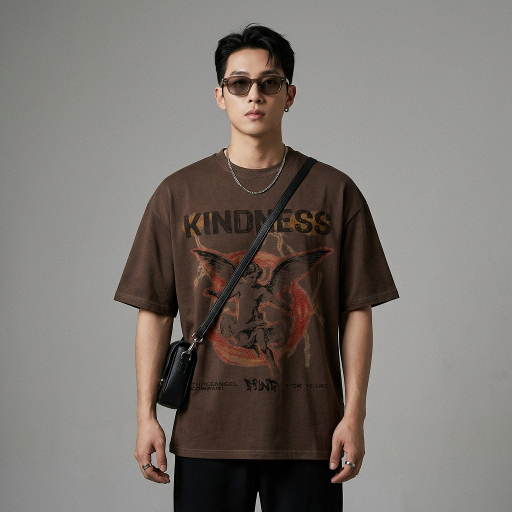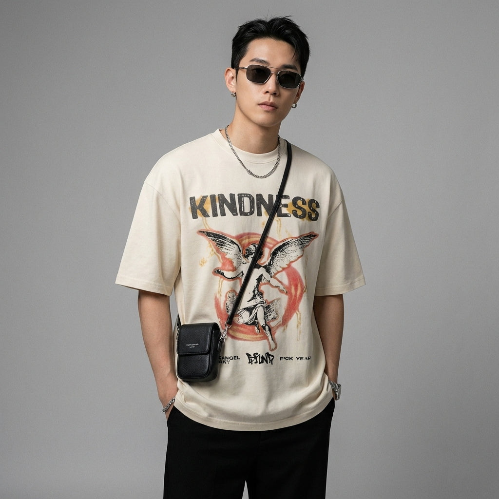 Afirma tu estilo con nuestra camiseta estampada "Little Angel", perfecta para un look casual y a la moda. ¡Su corte holgado y su diseño único la convierten en un imprescindible para los días soleados! ☀️