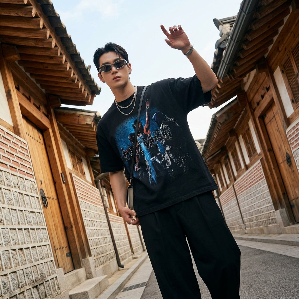 - Estilo: Streetwear, Hip Hop, Tendencia. Esta camiseta encarna el espíritu de la moda urbana coreana, ideal para un look casual y atrevido.