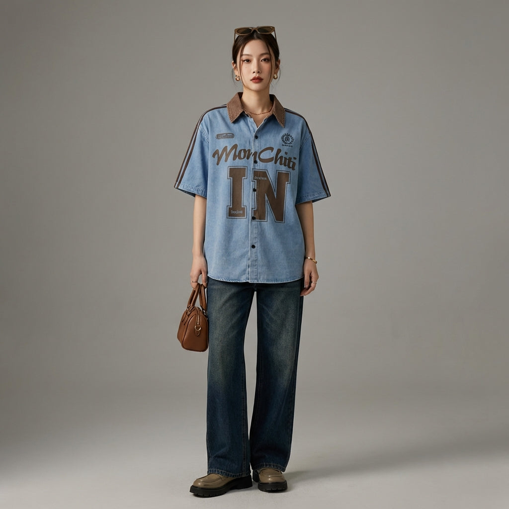 - Estilo: Retro Americano, Streetwear, Tendencia. Esta camiseta encarna una fusión perfecta entre el estilo retro americano y las tendencias actuales de la moda coreana, para un look atrevido y casual.