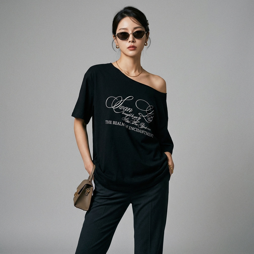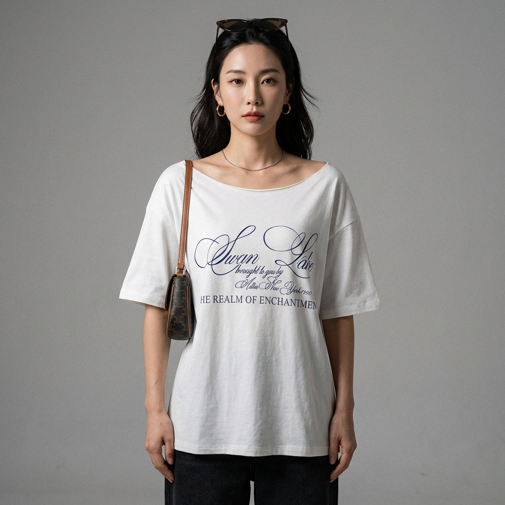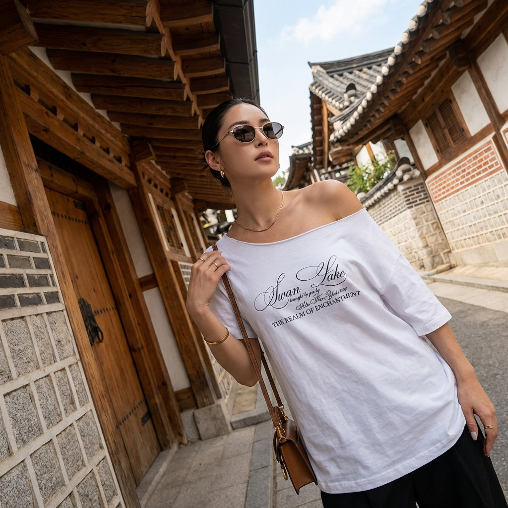 Afirma tu estilo con esta camiseta informal con hombros descubiertos, perfecta para un look streetwear moderno y atrevido. ¡Su estampado de moda añade un toque único a todos tus conjuntos! ✨
