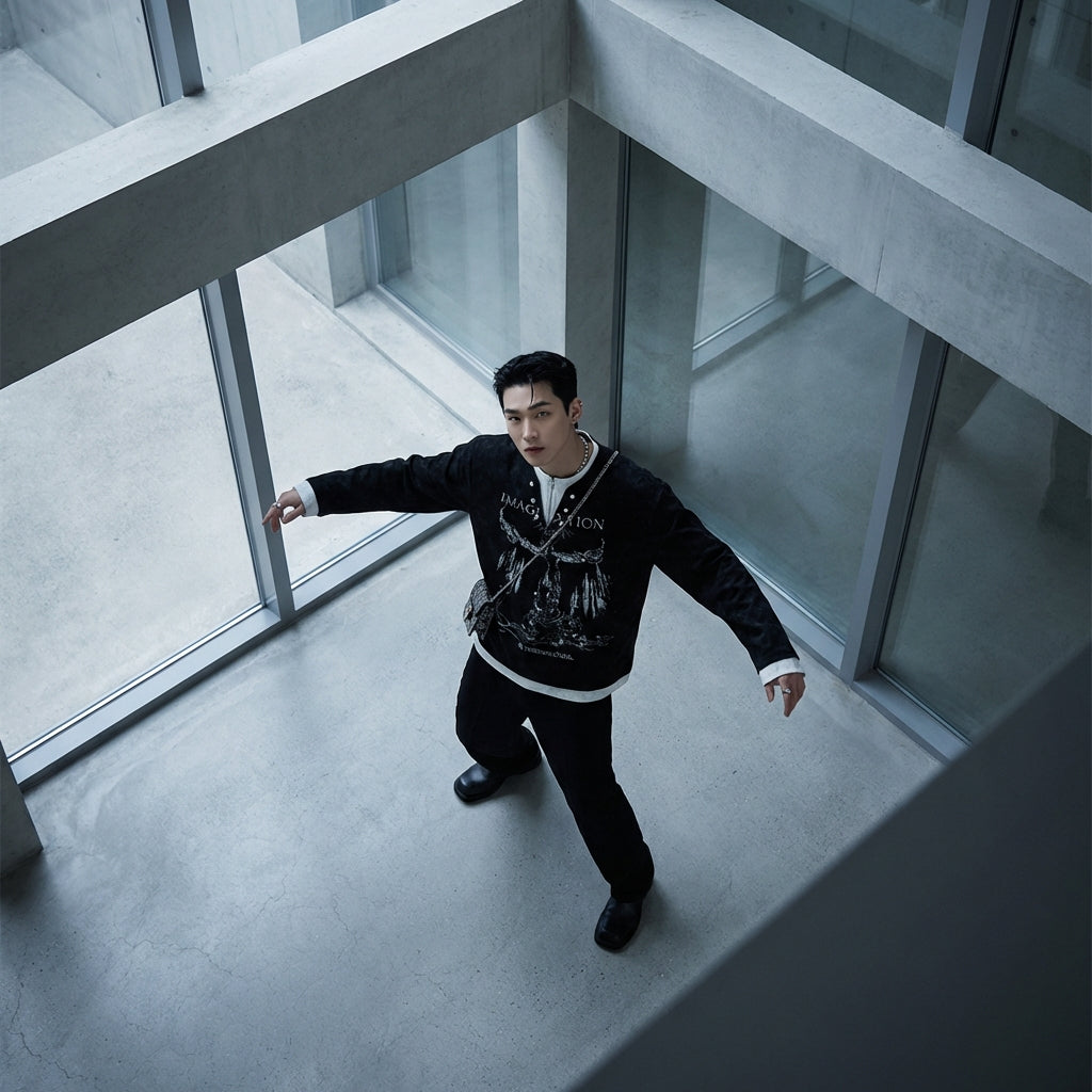 - Estilo: Streetwear, Urbano, K-fashion. Esta camiseta encarna el espíritu relajado y moderno de la moda urbana coreana, con un toque de originalidad.
