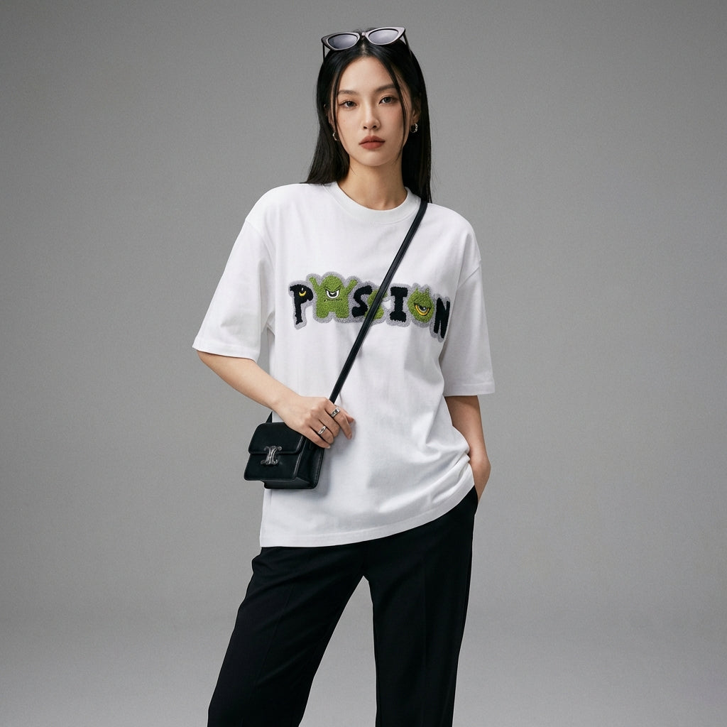 - Estilo: Streetwear, K-fashion, Retro japonés. Esta camiseta encarna el espíritu casual y elegante de la moda coreana, perfecta para un look audaz y contemporáneo.