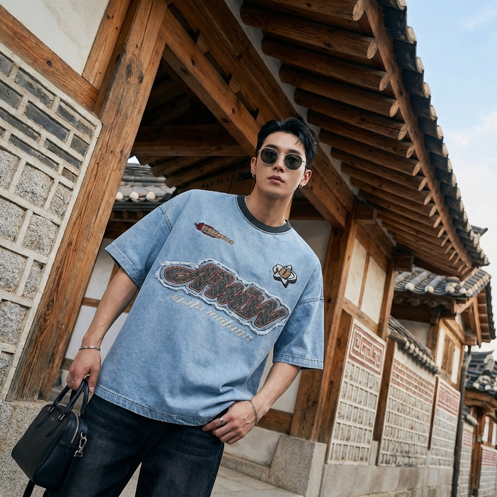 - Estilo: Streetwear, Retro Americano, K-fashion. Esta camiseta encarna una estética urbana y casual, inspirada en las tendencias coreanas y americanas.