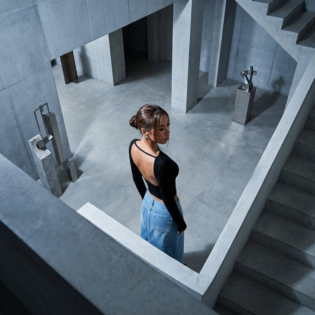 Adopta esta camiseta sin espalda para un look decididamente moderno y atrevido, una prenda clave que combina comodidad y audacia, inspirada en la moda coreana.