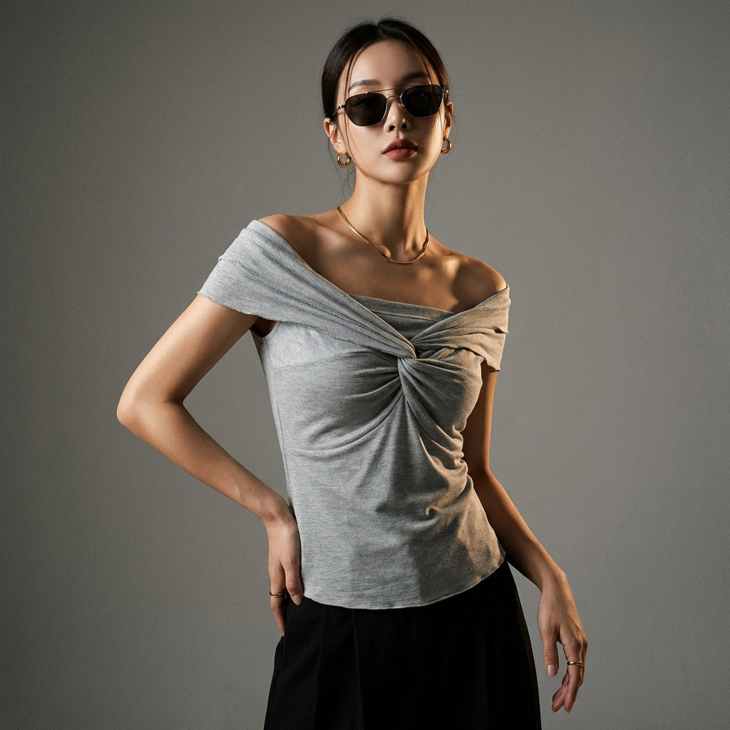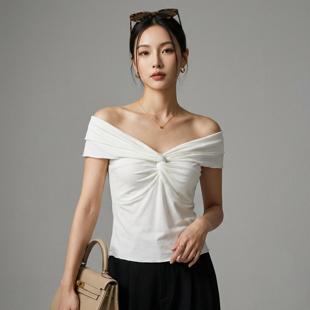Afirma tu estilo con nuestra camiseta corta con hombros descubiertos, una prenda atrevida y elegante para un look moderno y seductor. Su corte ajustado realza la silueta, ¡perfecta para los días soleados o las noches informales! ✨