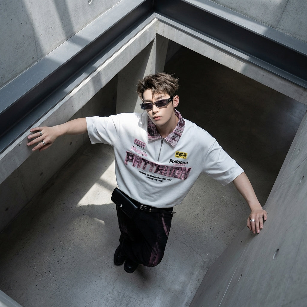 Adopta un look casual y a la moda con nuestra camiseta de cuello con cremallera, perfecta para un estilo streetwear atrevido. Su corte holgado y su diseño bicolor la convierten en una prenda versátil y cómoda para todos tus conjuntos de verano. ☀️