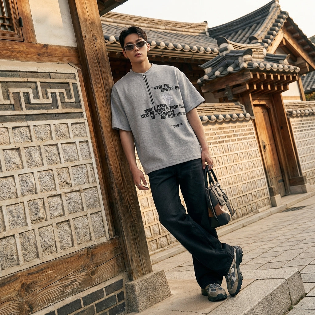 - Estilo: Streetwear, Urbano, Tendencia. Esta camiseta refleja la estética casual y moderna del streetwear, con un toque de moda coreana.